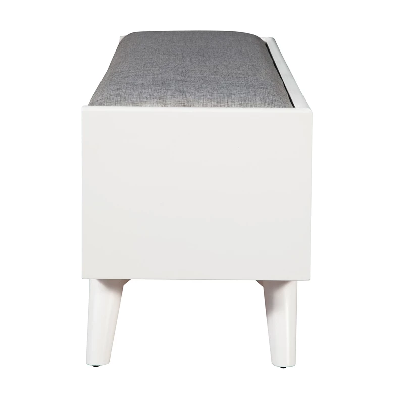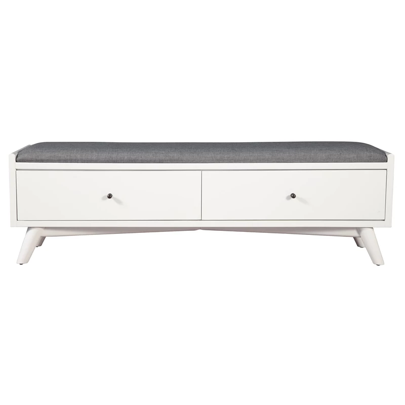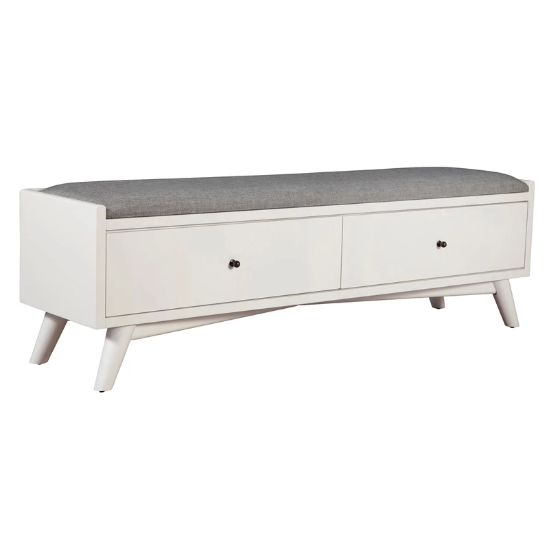 The Flynn collection features the classic lines of Mid-Century Modern furniture that never goes out of style. Its sturdy frames are built to last, constructed of sustainably sourced solid Mahogany to ensure a lifetime of use. The bench provide a roomy seating/storage solution and make it easy to create a cohesive decorating style or mix and match for a more personalized look. Crafted with English Dovetail Drawer Construction and Ball Bearing Metal Drawer Glides. Drawer is felt lined. Coordinates with other pieces in multiple finish options as part of the Alpine Furniture Flynn collection sold separately.