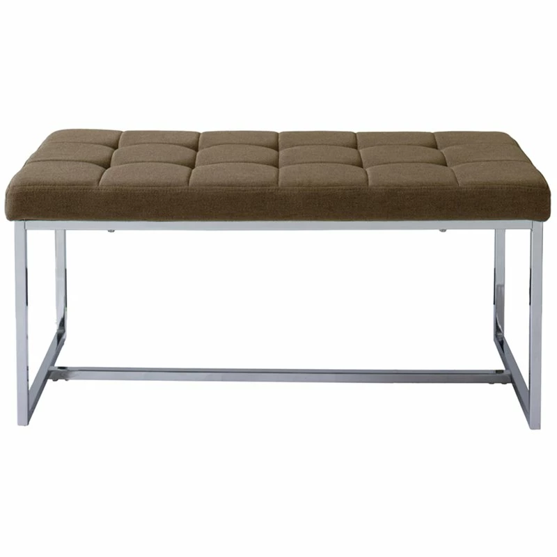Add elegance to your home with this fabric bench, supported by chrome legs that offer a sense of lightness and charm that will instantly upgrade the look of any room. The bench seat is topped by a comfortable high-density foam, wrapped in a woven fabric upholstery with a square patterned tufted detail. This bench can be used in an entryway, office, or in front of your bed, providing you with an effortless seating solution.
