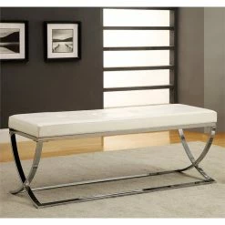Best Sale ๐ฅ Coaster Tufted Faux Leather Contemporary Accent Bench In White And Chrome โ๏ธ