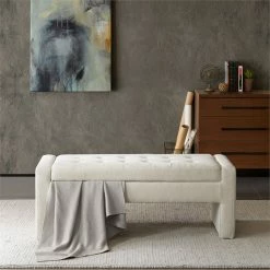 Flash Sale π Olliix Madison Park Gillian Modern Hardwood And Polyester Storage Bench In Cream β