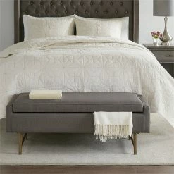 Outlet β Olliix Madison Park Heath Solid Wood And Polyester Accent Bench In Gray/Bronze βοΈ