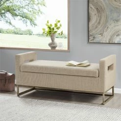 Outlet π Olliix Madison Park Crawford Solid Wood And Fabric Storage Bench In Tan/Bronze π