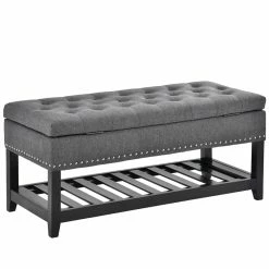 Promo π CRO Decor Storage Ottoman Bench Entryway Bench With Rubber Wood Legs-Gray π§¨
