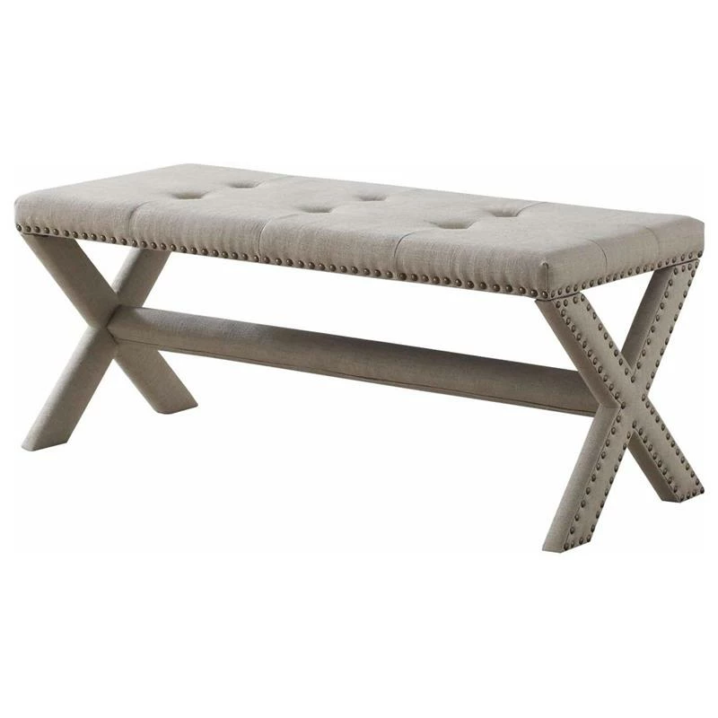 Budget π Best Master Furniture Best Master Fabric Upholstered Rectangular Accent Bench In Natural/Nail Heads π