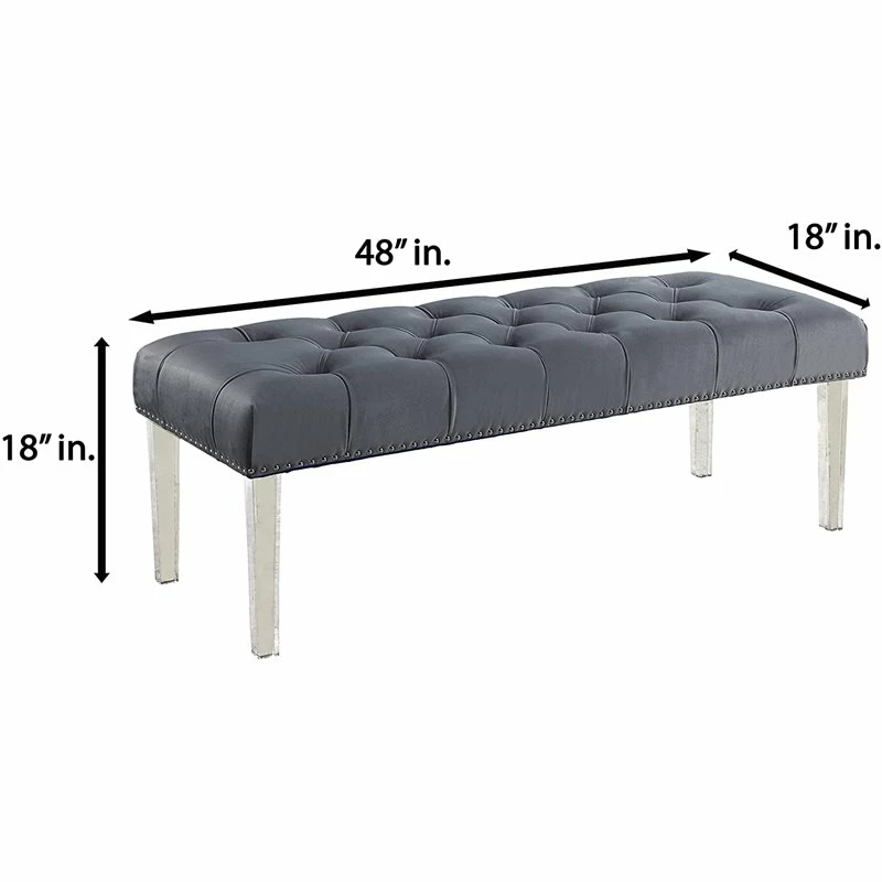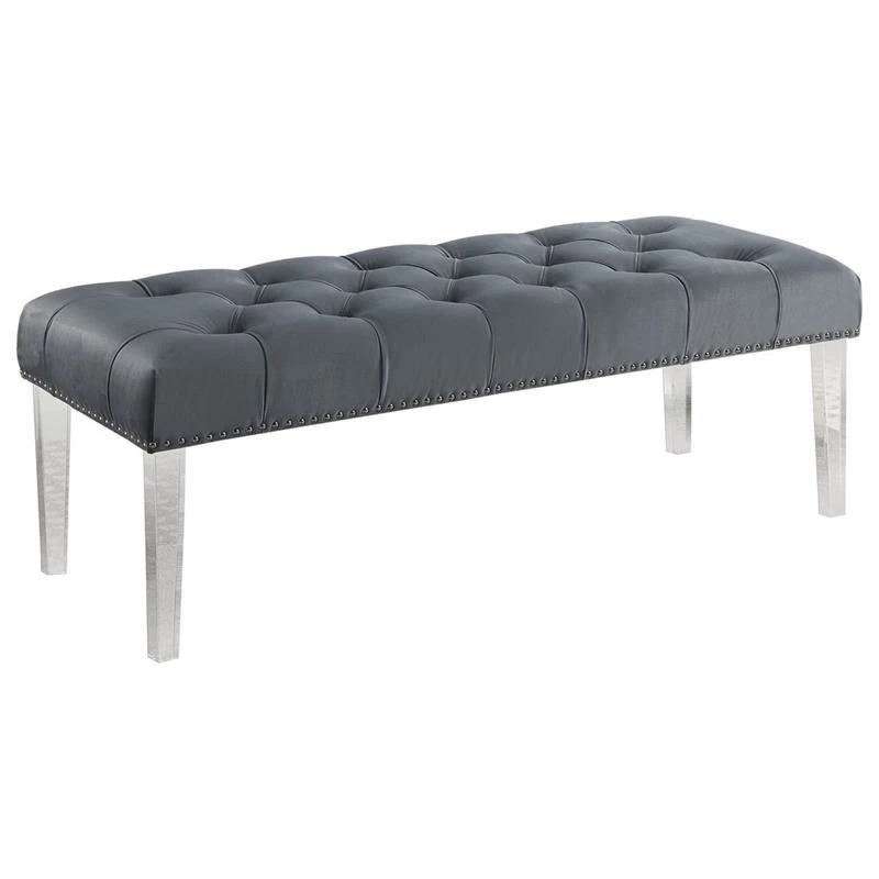 Wholesale π Bowery Hill Fabric Upholstered Tufted Bench In Gray And Acrylic Legs βοΈ