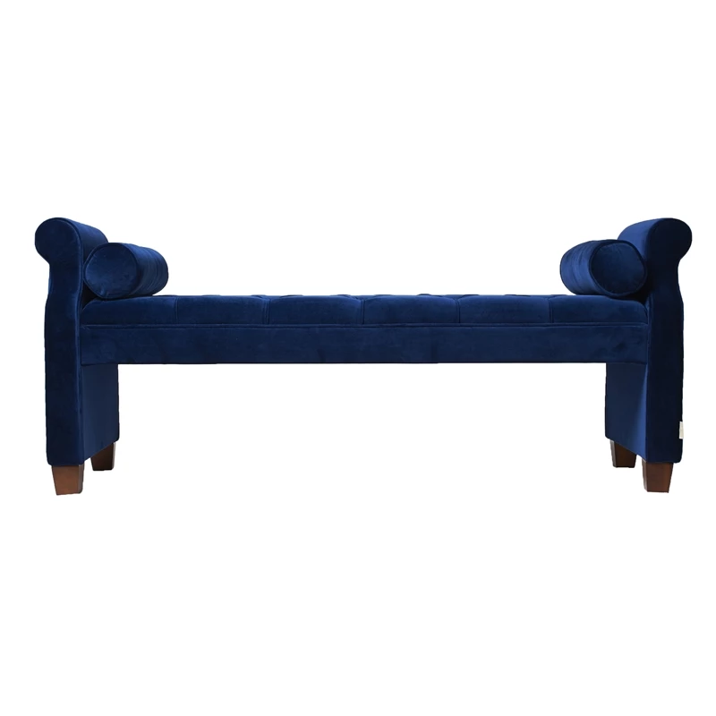 The entryway bench is the perfect addition to any living space looking to add a bit of a modern flair. High quality fabric wraps a solid wood frame made from kiln dried birch which provides exceptional support and stability. Crafted beautifully with rolled arms, hand tufting along seat, decorative matching cord trims, and 2 matching bolster pillows, this bench brings class and lounging comfort to any room in the home, whether it’s used as additional seating for guests or extra space to spruce up your home decor.