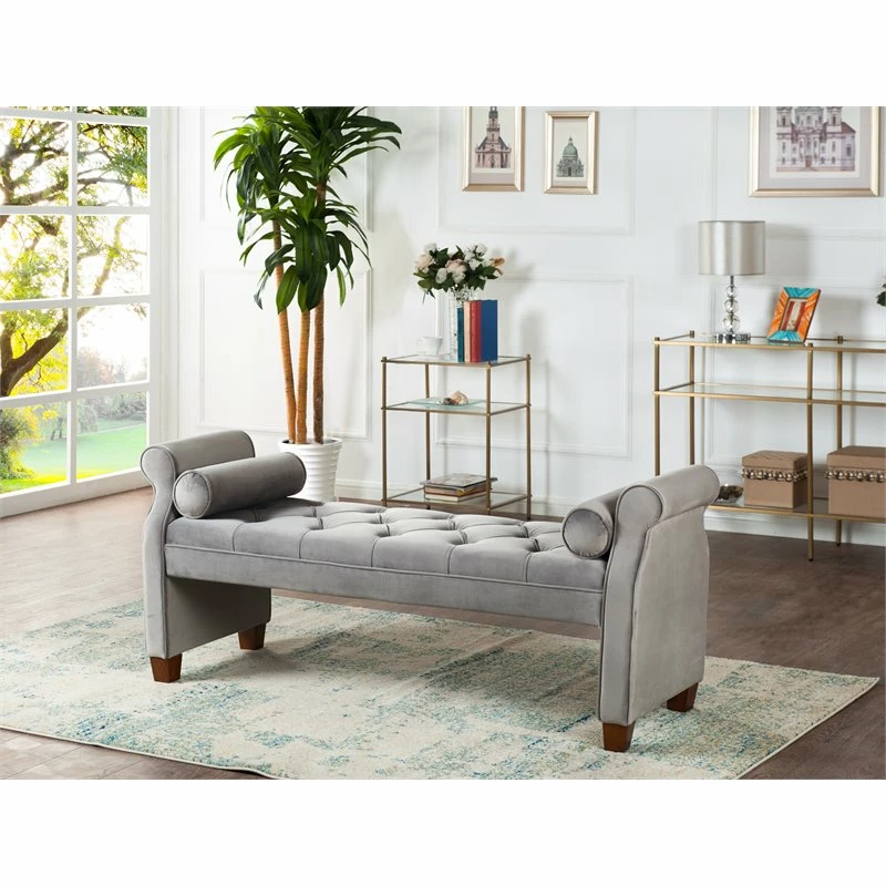 Coupon π― Brika Home Tufted Roll Arm Entryway Bench In Opal Gray π―