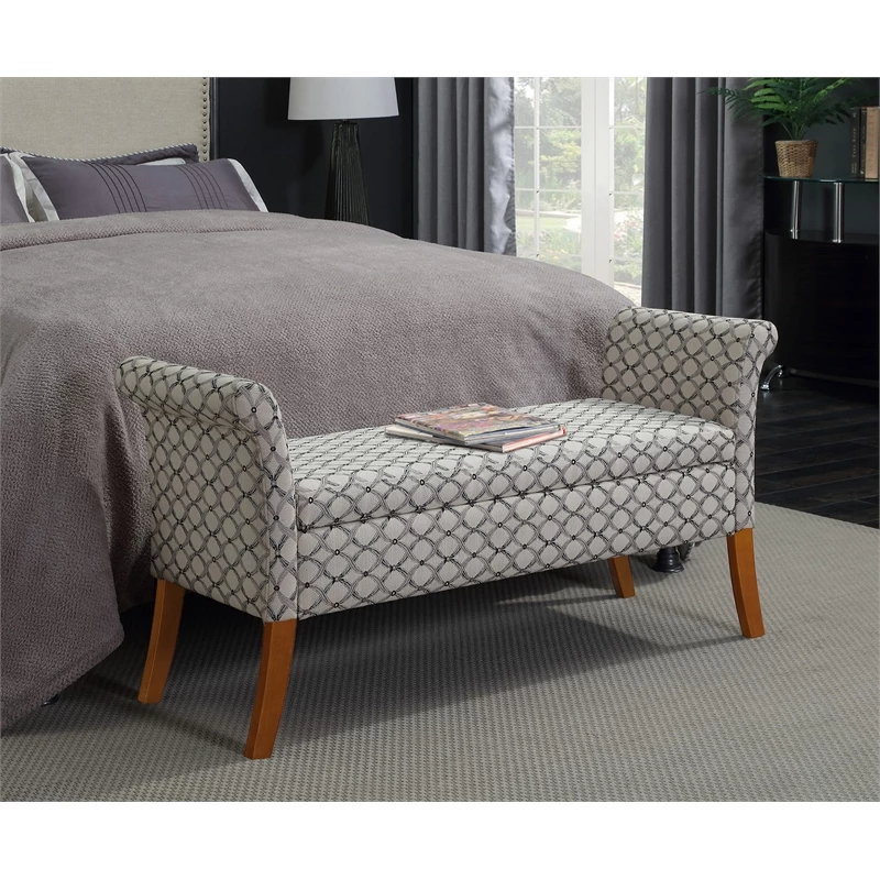 The Designs4Comfort Garbo Storage Bench by Convenience Concepts combines functional storage and comfortable seating. Featuring a classic rolled arm that gives this piece a timeless look. The hinged top allows easy access to ample storage space for anything from books to blankets. Made of solid wood legs and a durable fabric, this bench is built to last for many years of enjoyment. With endless possibilities, this piece will complement any room in your home.