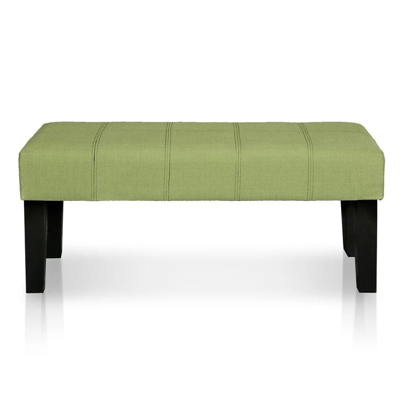 The Green Accent Bench features soft linen-like fabric upholstery and comfortable foam padding. Fine panel stitched design adds detail to the wide bench seat while wood tapered legs beautifully contrast the overall design. Perfect for your living room, bedroom or entryway, this Accent Bench delivers a touch of elegance and charm to your style.