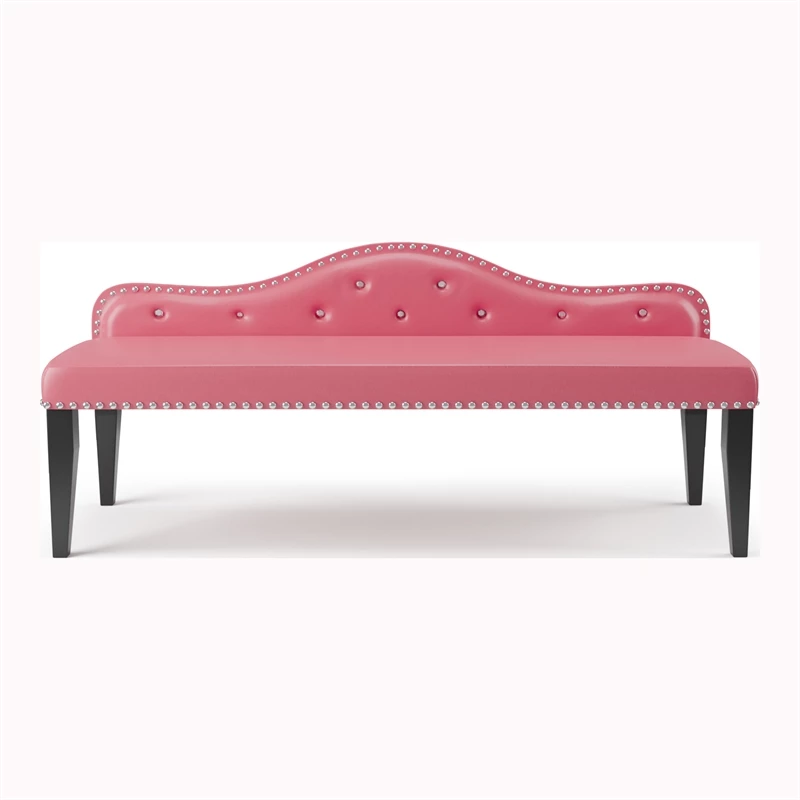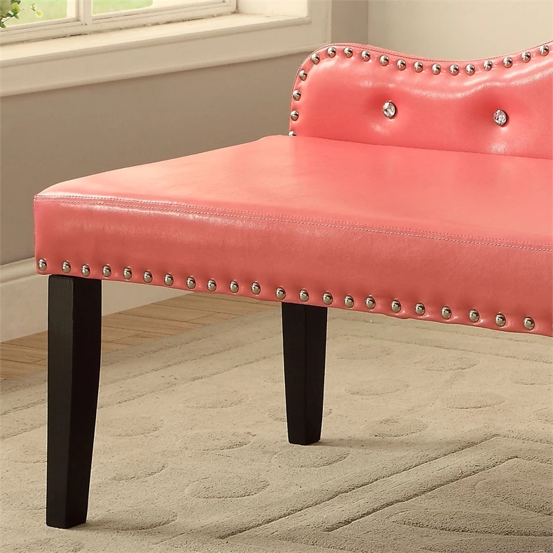 This tufted bench creates a sensation in your child’s bedroom with its naturally stylish form and chic details. Features like nailhead trim accents, a plush pink faux leather finish and sparkly crystal-like button-tufting on the camelback-shaped backrest create a sophisticated but relaxed place for your little one to relax, play and admire.