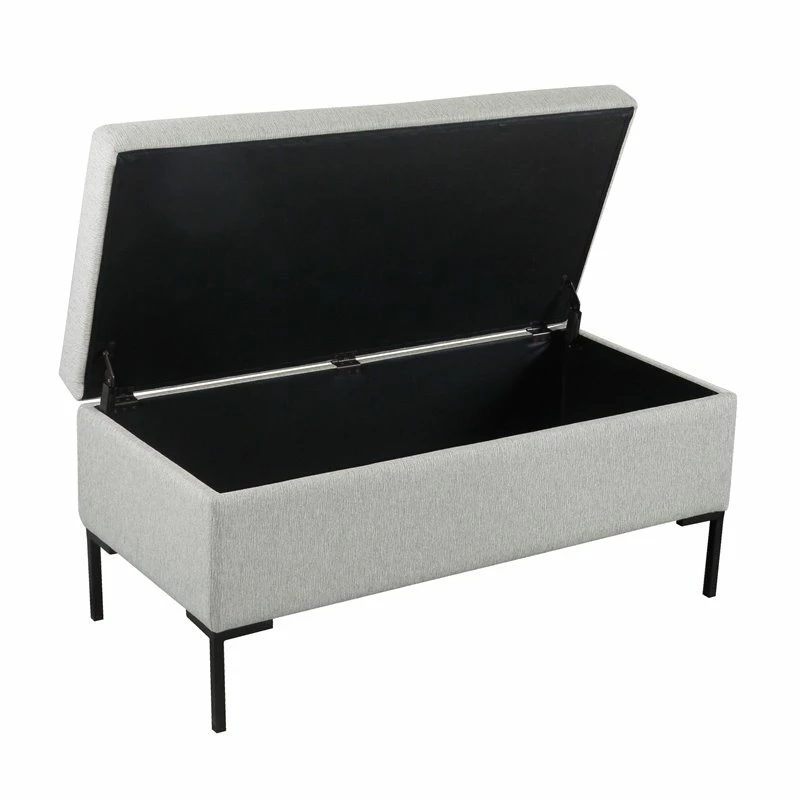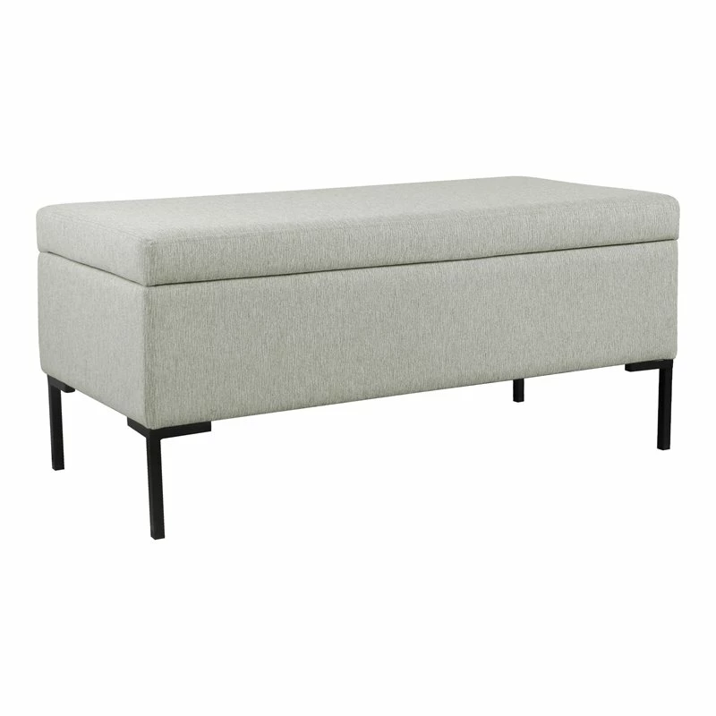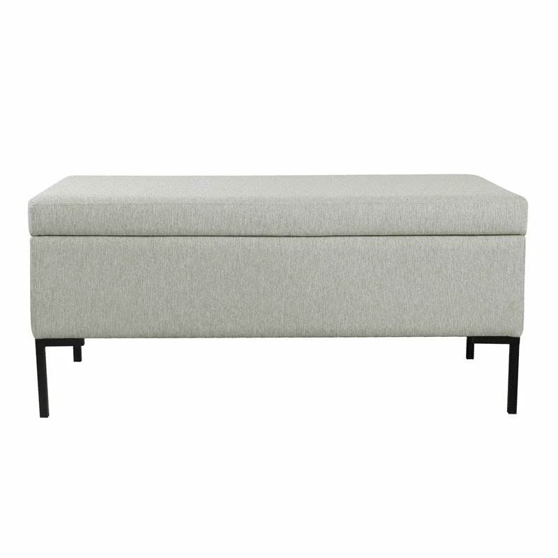 Add style and storage to any room in your home with our HomePop Large Metal Storage Bench. Featuring a modern design and matte black metal legs, our multi-functional sustainable gray woven storage bench can provide seating and double as a coffee table, serve as a bedroom bench or as an entryway bench with storage. This unique and functional bench easily blends with many different styles and colors in your home. If you’re looking for a premium addition to your home at a reasonable price, make this your next accent furniture investment. Easy to assemble and maintain, spot clean only.