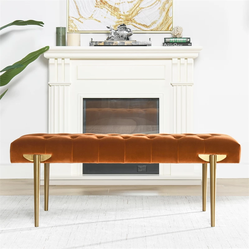 Coupon π Jennifer Taylor Home Aria Upholstered Gold Accent Bench Burnt Orange β