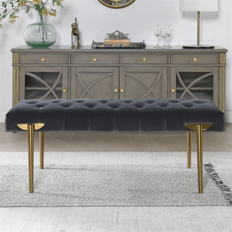 Outlet π₯° Jennifer Taylor Home Aria Upholstered Gold Accent Bench Steel Gray π