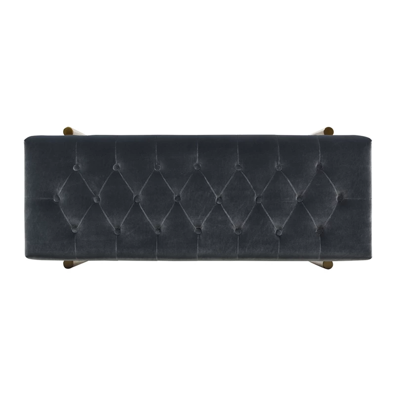 The Aria Accent Bench is a glamorous statement perfect wherever you need additional seating. The performance velvet upholstery is durable and soft, great for homes with kids and pets, and is complemented by the satin gold legs. Use this bench as a dining banquette to complete your dining set, or as a cocktail ottoman in your living room, or in your bedroom at the end of your bed.