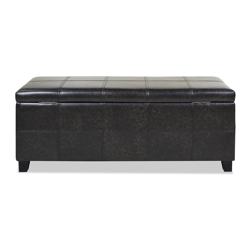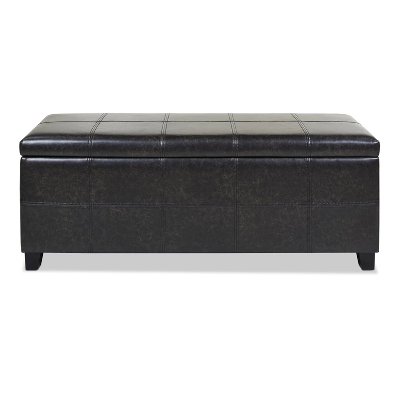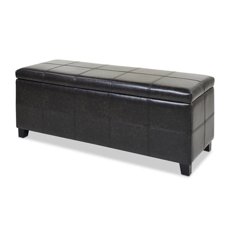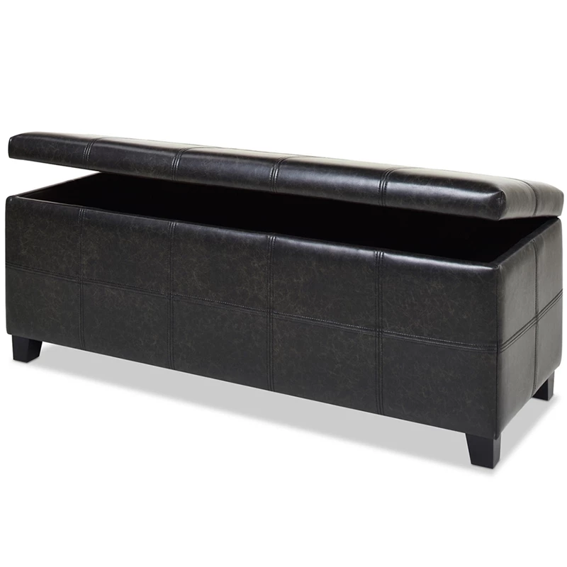The Ryan Storage Bench by Jennifer Taylor Home is a multi-functional accent piece useful for any room in your home. The flip-top lid lifts up on metal stay-open hinges, and reveals a spacious storage compartment to hide away extra throw blankets and pillows, toys, and other knick knacks to keep them out of the way. Upholstered in a high-quality, peel-resistant faux leather, the buttery smooth feel is great for extra seating in your living room as a cocktail ottoman, in your entryway as entryway seating, or in your bedroom at the foot of your bed.