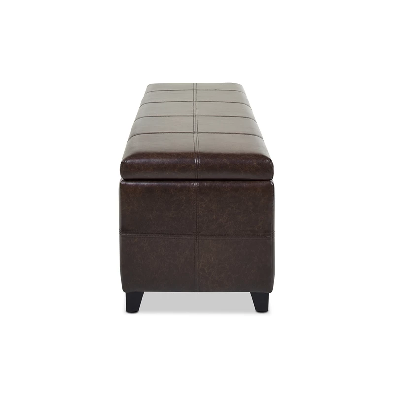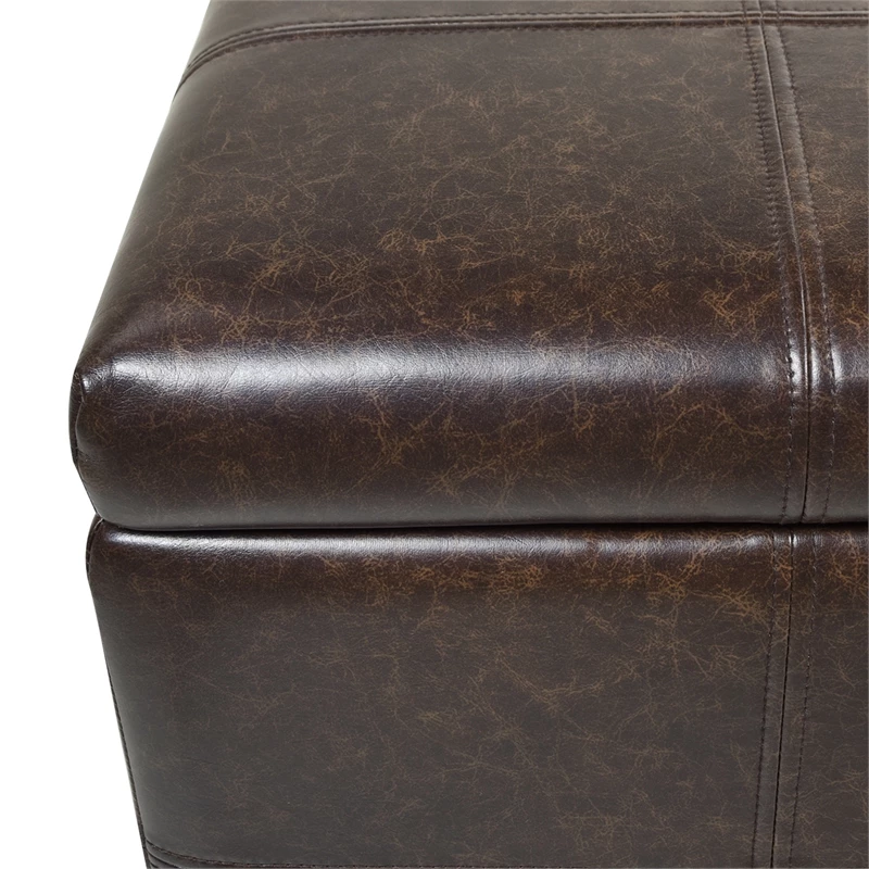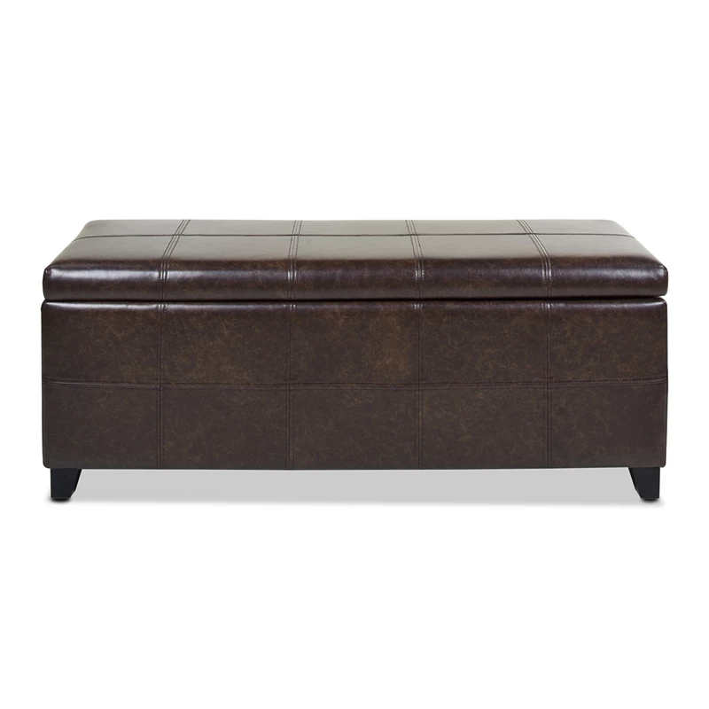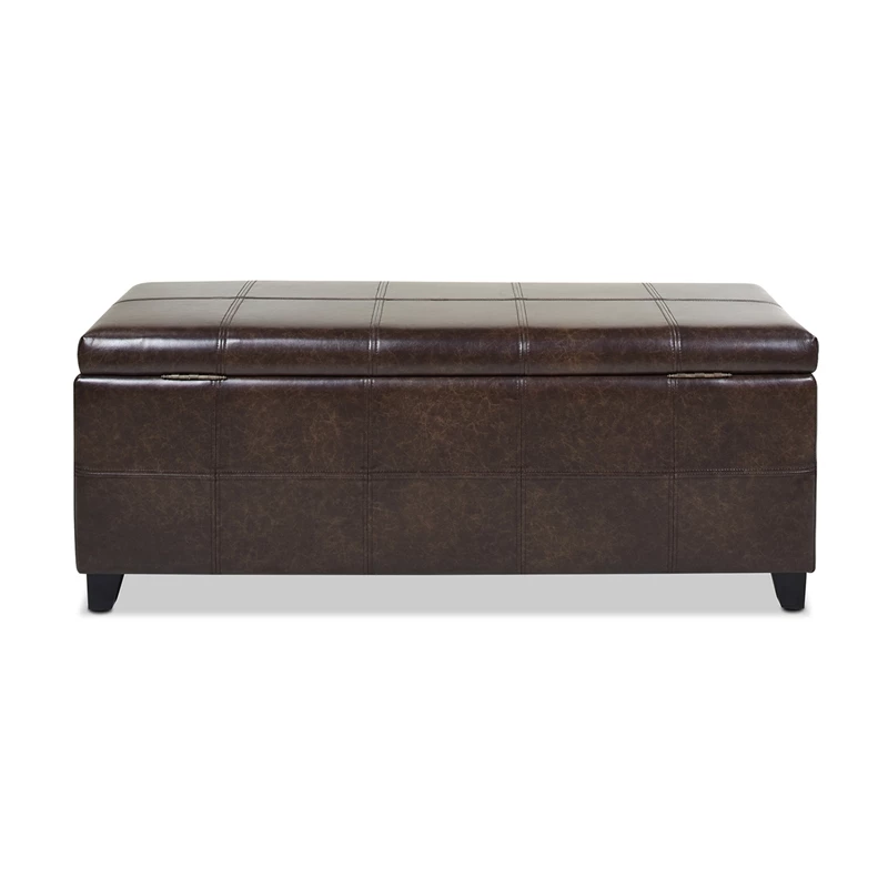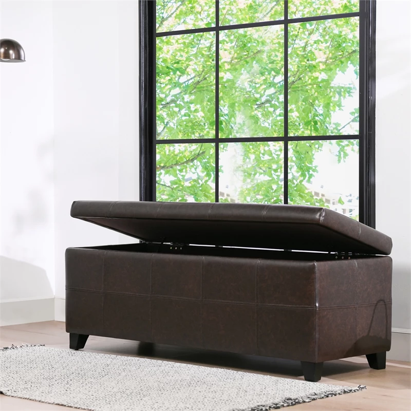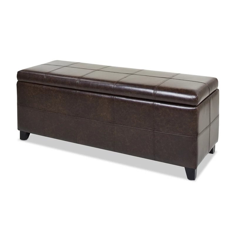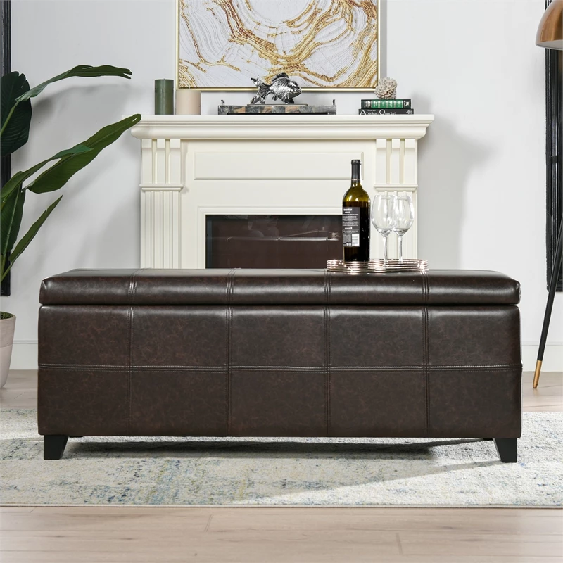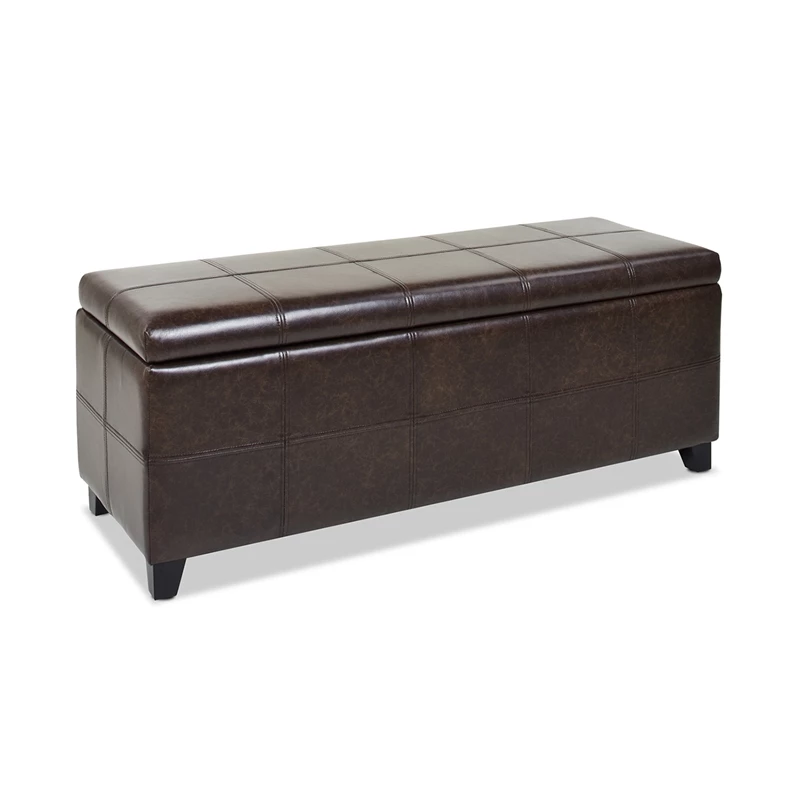 The Ryan Storage Bench by Jennifer Taylor Home is a multi-functional accent piece useful for any room in your home. The flip-top lid lifts up on metal stay-open hinges, and reveals a spacious storage compartment to hide away extra throw blankets and pillows, toys, and other knick knacks to keep them out of the way. Upholstered in a high-quality, peel-resistant faux leather, the buttery smooth feel is great for extra seating in your living room as a cocktail ottoman, in your entryway as entryway seating, or in your bedroom at the foot of your bed.