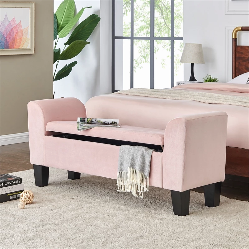 Discount π Lilola Home Mila Pink Velvet Fabric Ottoman Glam Bench With Storage Space π