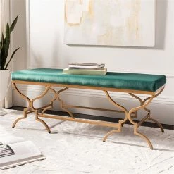 Coupon π₯° Safavieh Juliet Upholstered Bench In Emerald And Gold β€οΈ