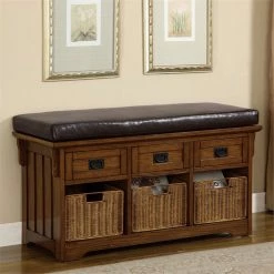 Coupon π Coaster 42″ 3 Drawer Faux Leather Bench In Brown π