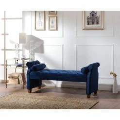 Flash Sale π Brika Home Tufted Roll Arm Entryway Bench In Navy Blue π―