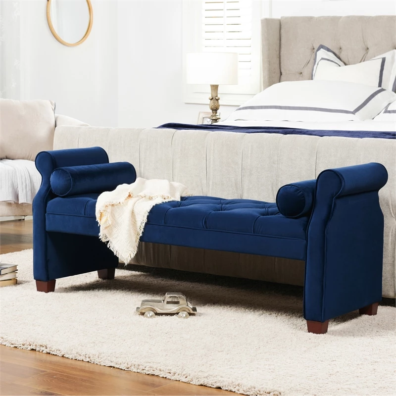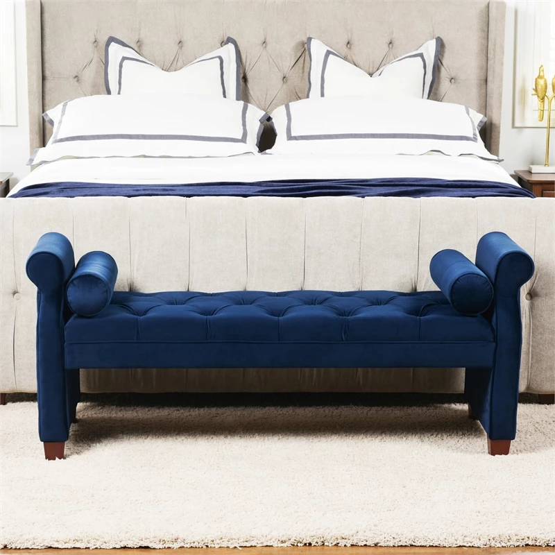 Promo π Maklaine Contemporary Hardwood Tufted Roll Arm Entryway Bench In Navy Blue π§¨