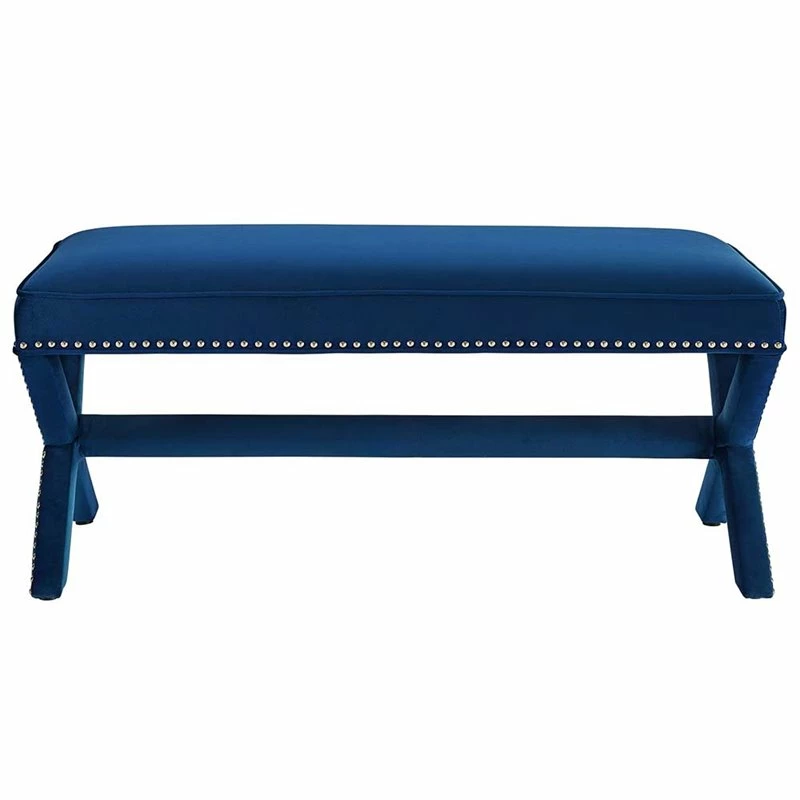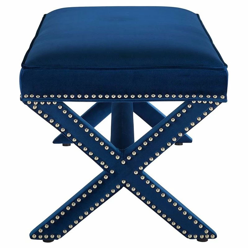 Add charm to your home or apartment décor with the Rivet bench. Featuring timeless nailhead trim, an elegant X-base frame, and surrounded by stain-resistant velvet fabric with dense foam padding, Rivet is a perfectly soft and cozy bench for the chic modern lifestyle. This is the perfect addition to a bed, living, and lounge rooms.