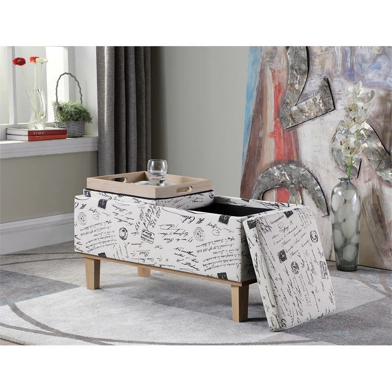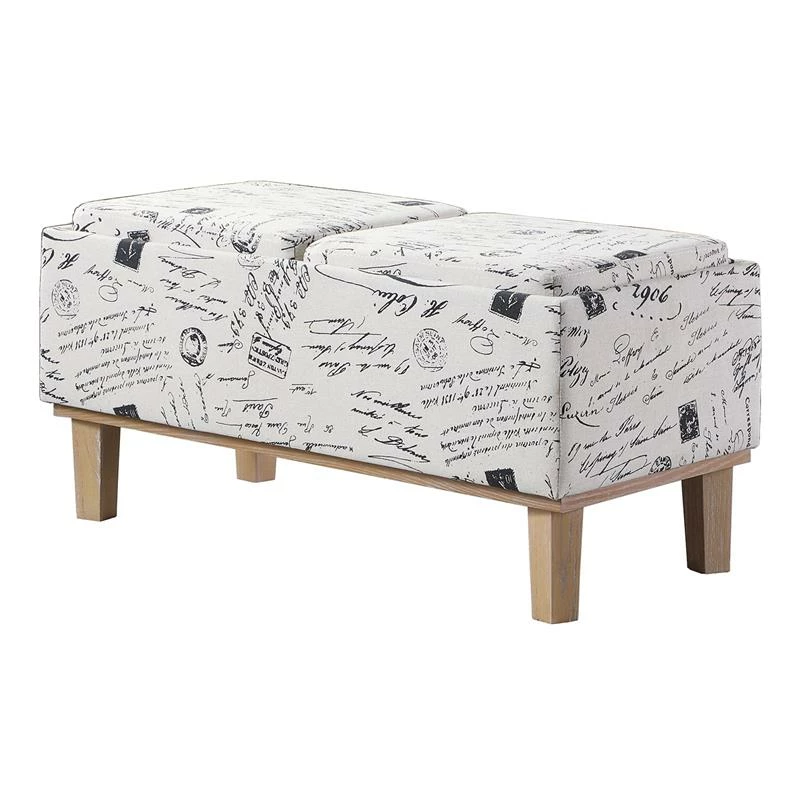 Crafted of rubberwood and birch veneer, the Beige Stencils Letter Mid-Century Modern Bench is a unique addition to any home. The warm unfinished wood perfectly complements the beige, 100% Linen/Polyester upholstery. One seat be able to flip to an installed serving tray with handles is perfect for storage of home essentials. The detachable 2 seating features a hidden storage to store your blankets, cushions, pillows, periodicals, tea sets and accessories. The chic Mid-Century style is ideal for anyone looking to update their home with a fashionable, functional addition. Highlighted by a wooden frame, this multifunctional storage bench ottoman provides stylish seating and storage. Interior compartments offer ample storage space.
