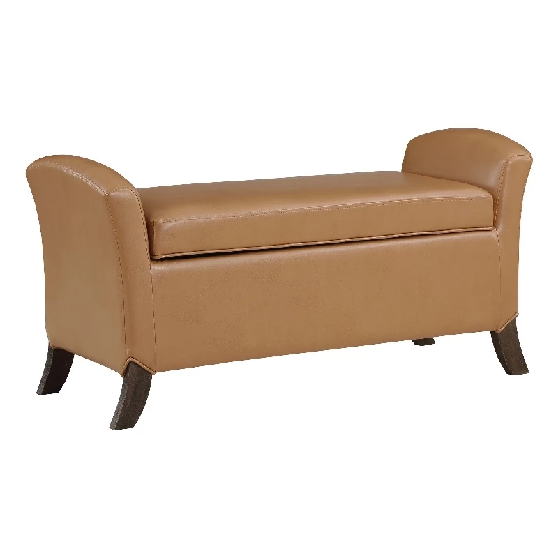 Cheapest βοΈ OSP Home Furnishings Coborn Storage Bench In Camel Brown Faux Leather With Gray Legs π