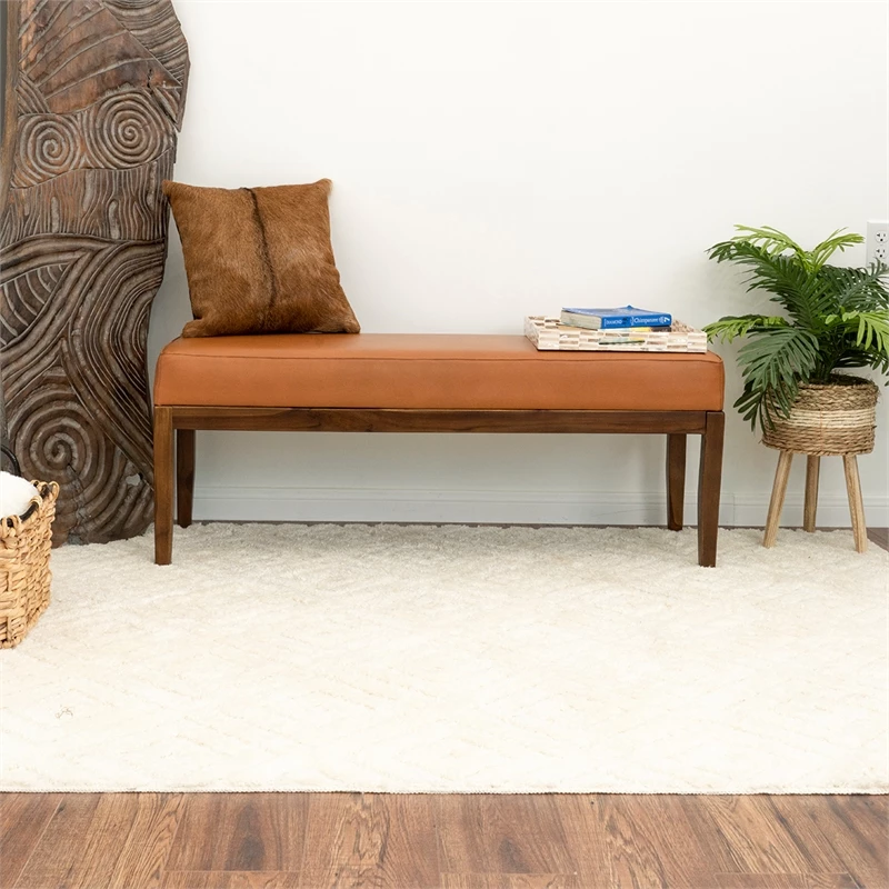 Promo π Pemberly Row Mid-Century Rectangular Genuine Leather Bench In Tan π