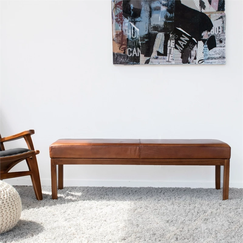 Top 10 π Ashcroft Komodo Mid-Century Modern Rectangular Genuine Leather Bench In Tan π