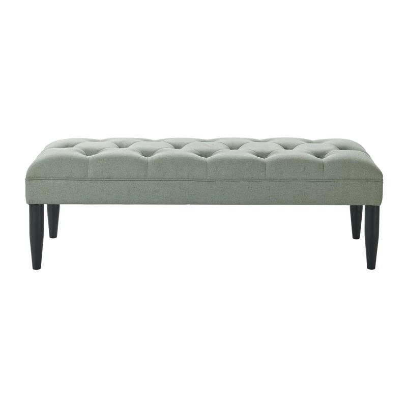 The Picket House Furnishings Aris Tufted Upholstered Bench is just what your entryway needs! This transitional style is rectangular in shape and features a button-tufted foam cushion seat. The diamond stitching instantly adds extra flair to this already stylish accent piece. Not only will this upholstered bench look great in your entryway, but it can also serve as a great piece for the foot of your bed while your getting ready and need a spot to get your shoes on. The dark espresso legs pair beautifully with the charcoal upholstery, making it easy to pair with any existing decor. Add the Aris Tufted Bench to your home today for a look that will never go out of style!