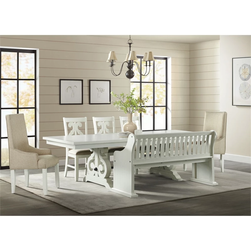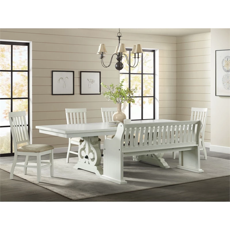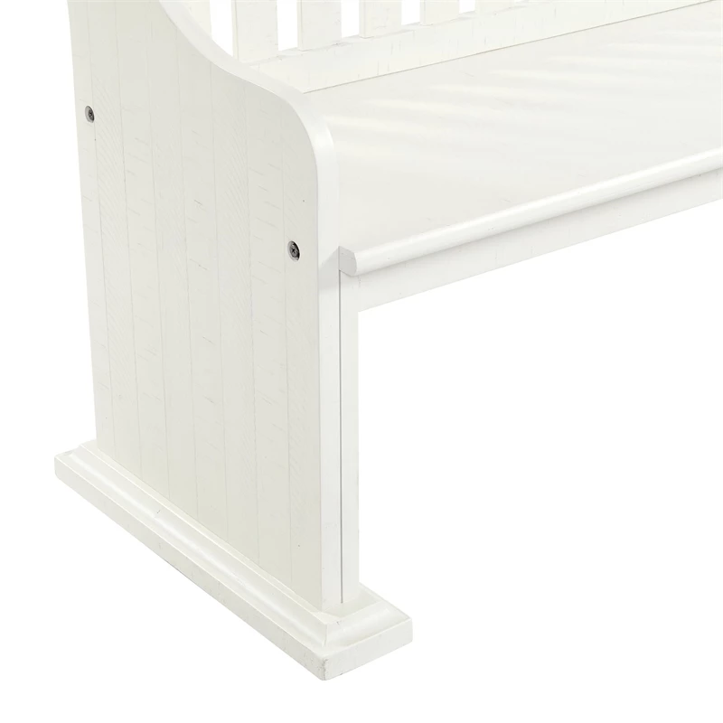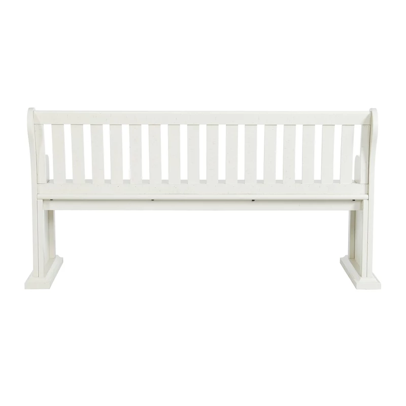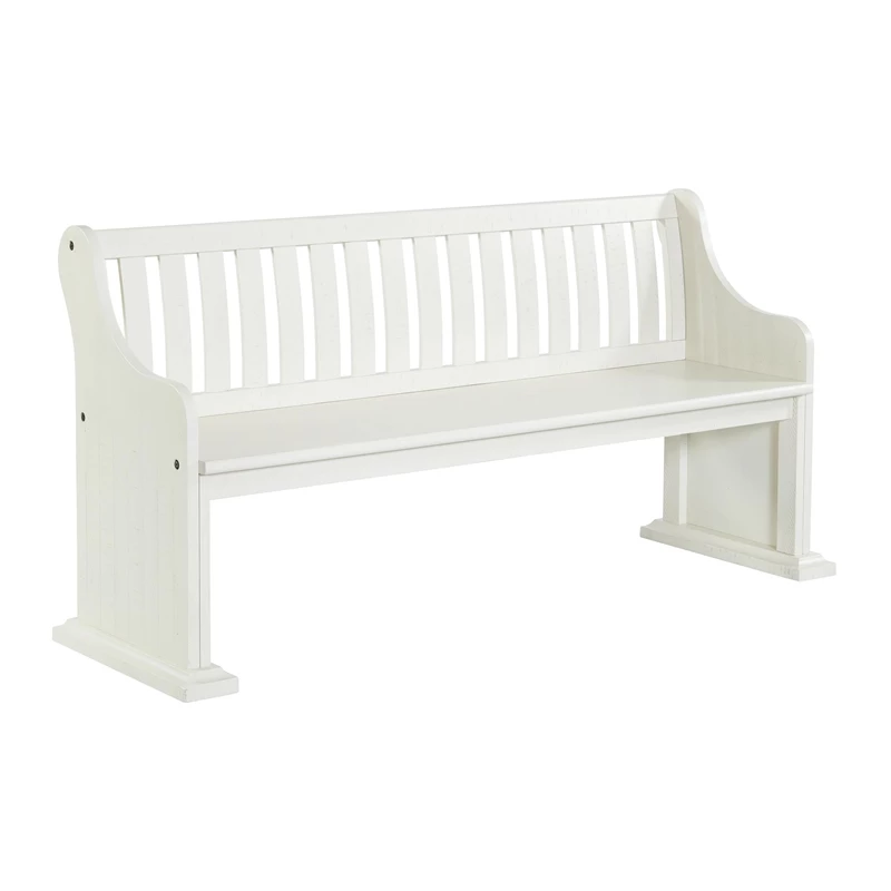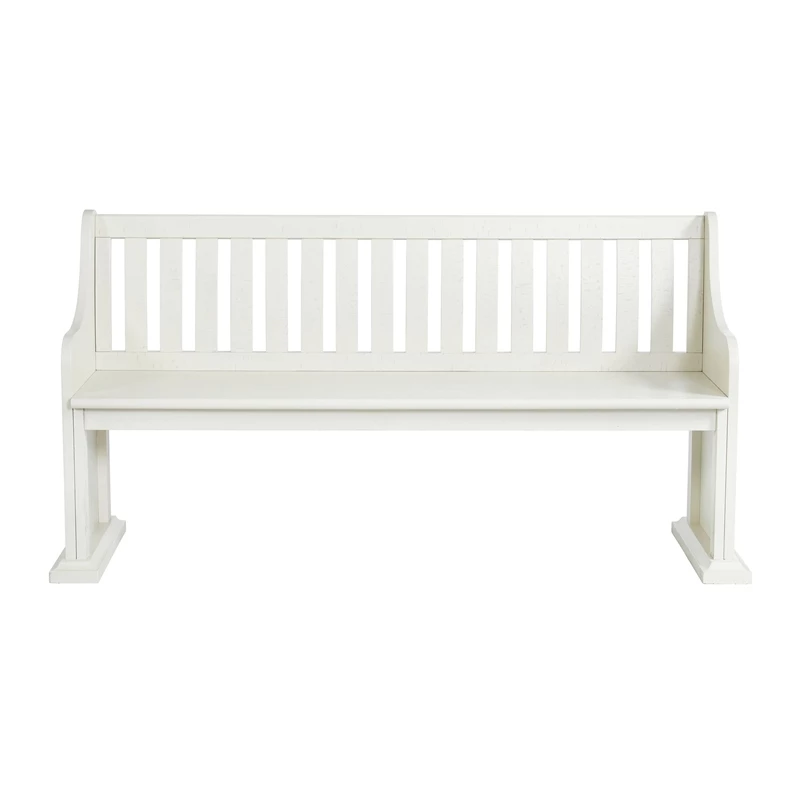 The Picket House Furnishings Stanford Pew Bench in White brings refined style and warm design to your dining area. Constructed of wood solids and veneers with a white finish, this bench features a lovely lath back design. Distressed markings are featured throughout, instantly adding extra flair to this already stylish bench. Add this beautiful bench to your dining table or to another area of your home to bring it all together!