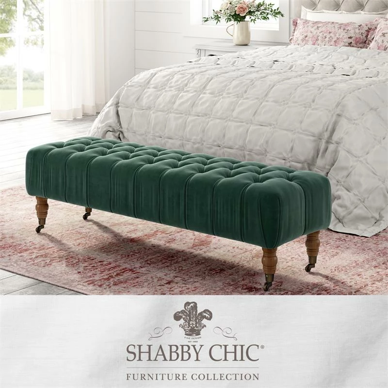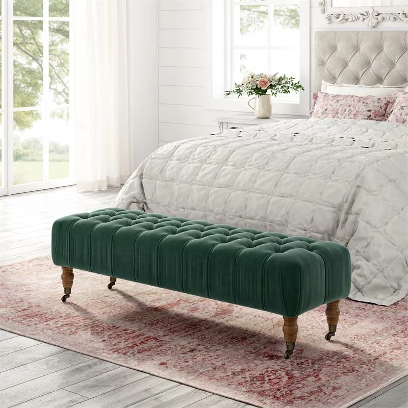 Outlet π₯° Posh Living Tina Bench Hunter Green Velvet Upholstered Button Tufted π