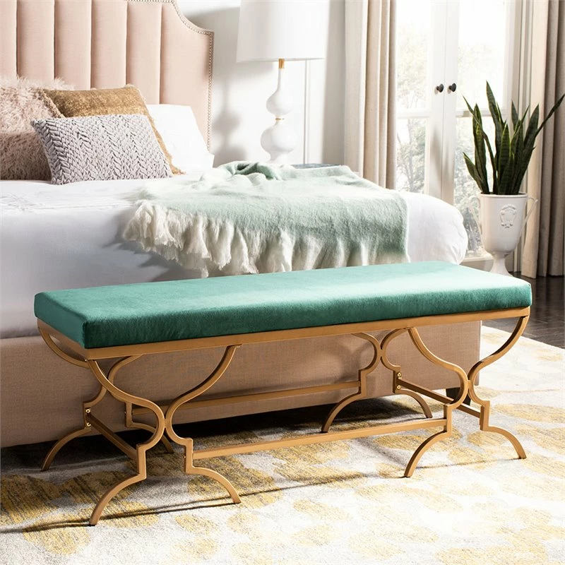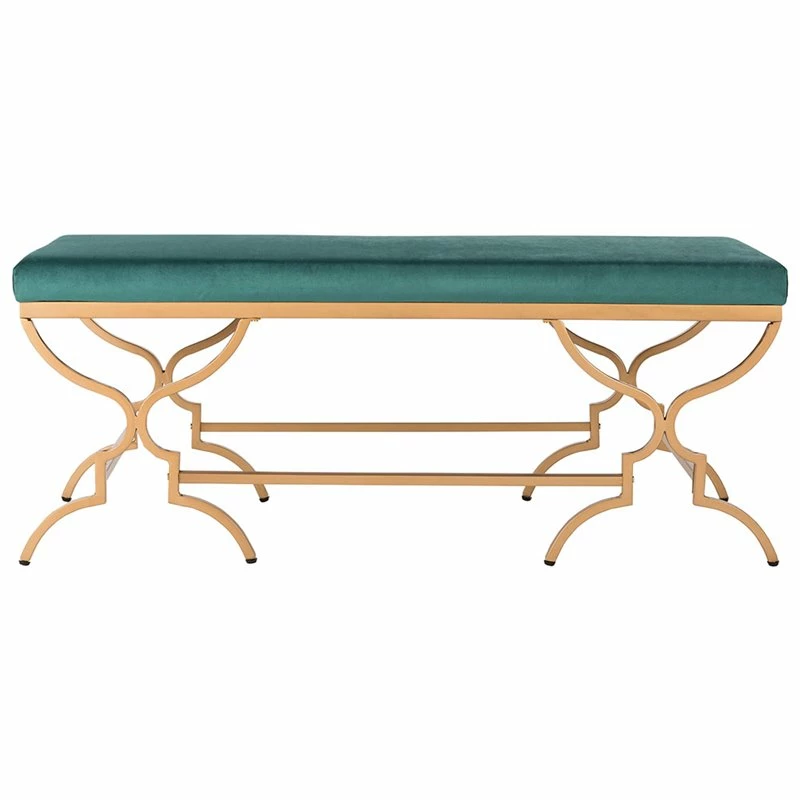 Lowest price online On all Safavieh Juliet Upholstered Bench in Emerald and Gold – BCH6203B