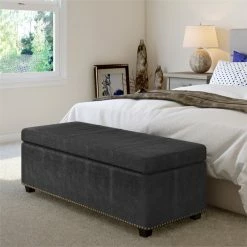 Budget π₯ Simpli Home Kingsley Faux Leather Bedroom Bench With Storage In Distressed Black βοΈ