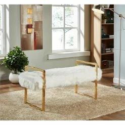 Cheap βοΈ Michael Amini Kathy Ireland Eclipse Wood & Polyester Fabric Bed Bench π