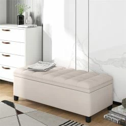 Cheap 𧨠CRO Decor Upholstered Flip Top Storage Bench With Button Tufted Top-Beige π