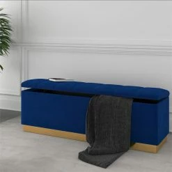Cheapest π !nspire Esna Contemporary Velvet Upholstered Storage Bench In Blue/Gold π