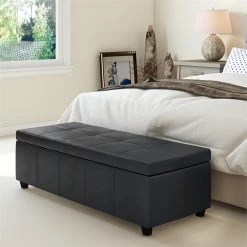 Wholesale π Simpli Home Castleford 48″ Contemporary Rectangle Ottoman In Black Faux Leather β