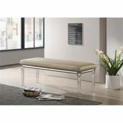 Wholesale π Bowery Hill Fabric Upholstered Tufted Bench In Gray And Acrylic Legs βοΈ