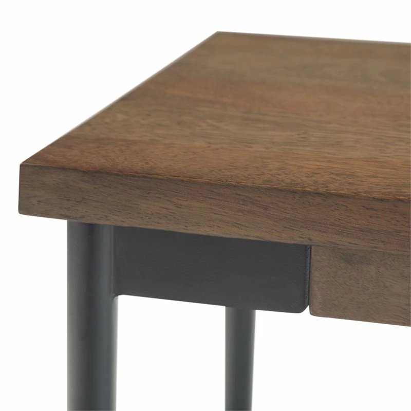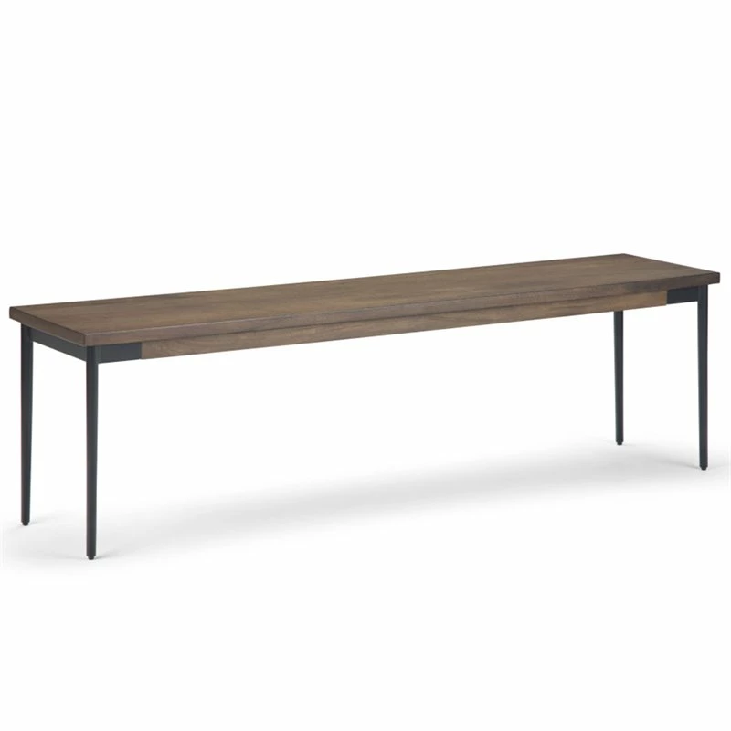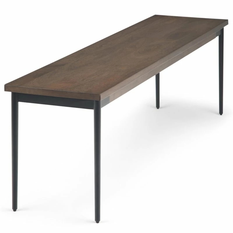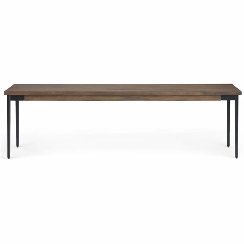 Clean, simple, modern, natural, authentic, unique. The Stockton bench is an instant classic with its natural thick richly-grained mango wood seat and its elegant round metal legs with angle seat joints. This extra long bench is wide enough to be placed at the foot of your bed, narrow enough to be put in your front hallway, or big enough to serve as a bench at your dining table. This elementary and uncomplicated bench is rich in detail. Its lack of complexity gives it universal appeal.