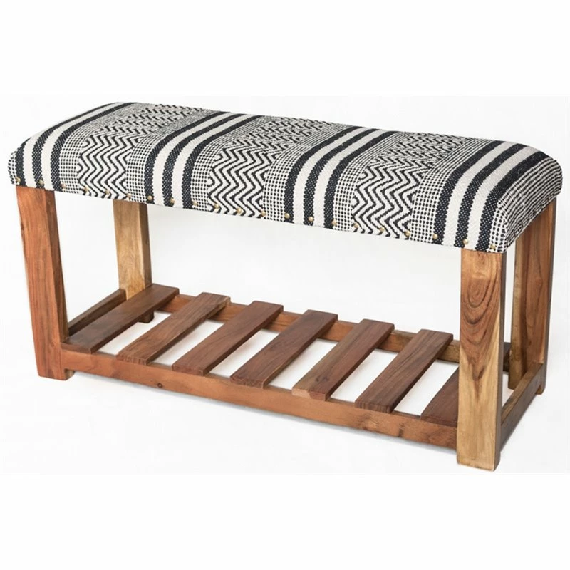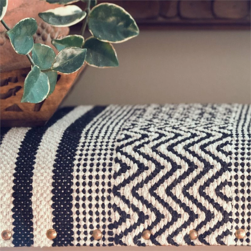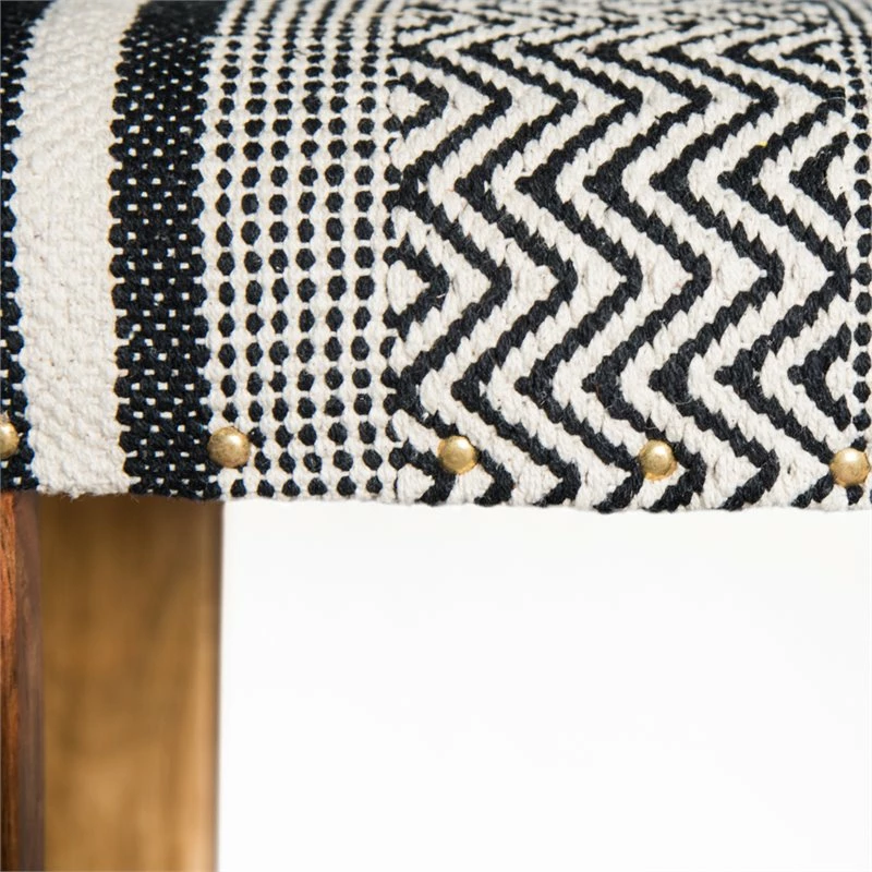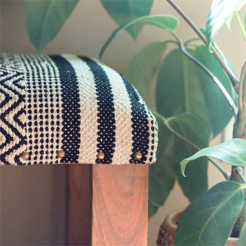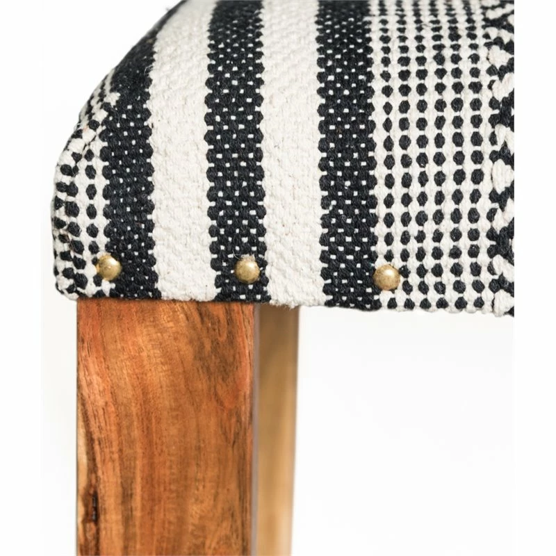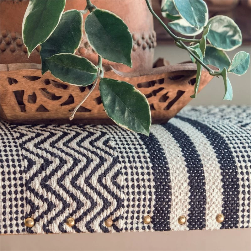 Traditional and modern art put together, to give your home a boho look. This bench is made from Acacia wood with a natural polishing and provides seating. Upholstery by cotton rug fabric provides you utmost seating comfort.