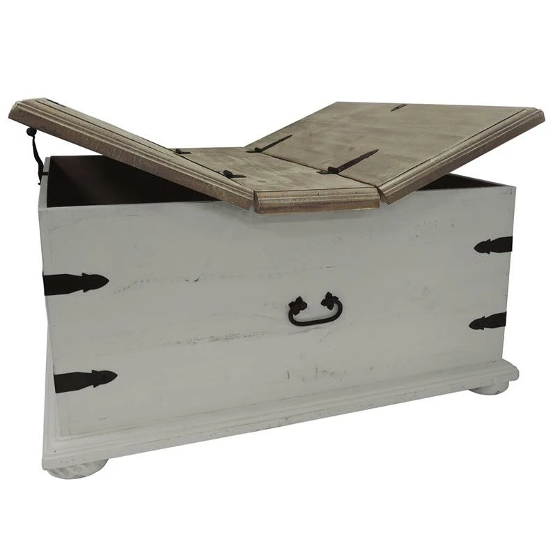 Promo π₯° The Urban Port 37″ Trunk Shaped Wood Cocktail Table With Lid Opening In White π