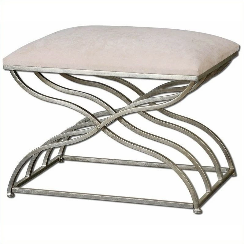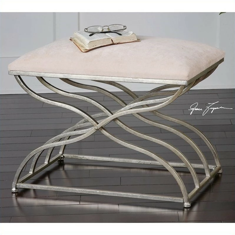 Promo ⌛ Uttermost Shea Satin Nickel Small Bench In Plush Ivory ❤️