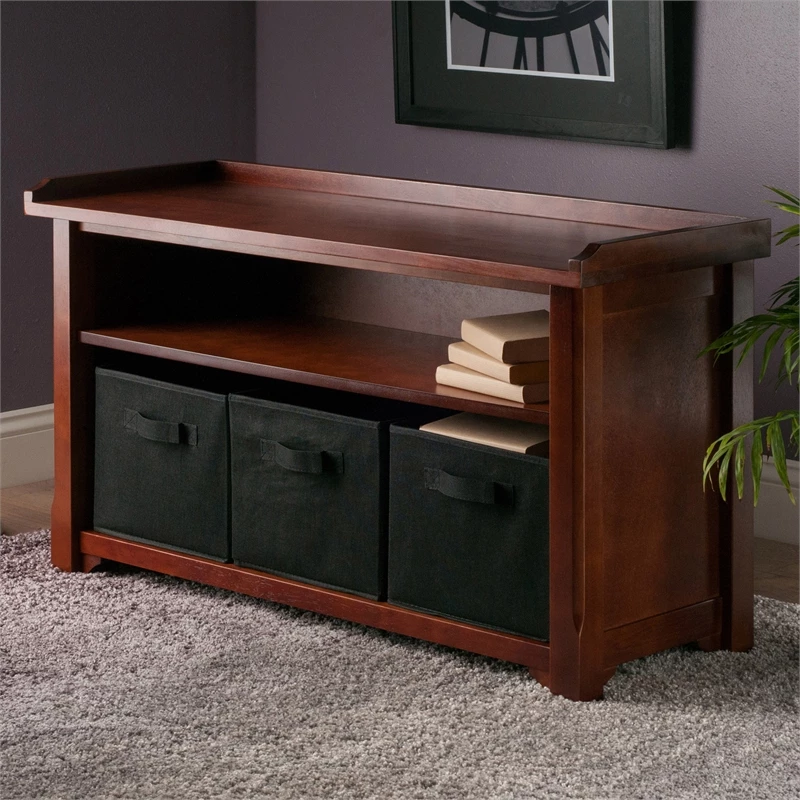 Deals β Winsome Verona Storage Bench With 3 Foldable Black Baskets In Walnut π
